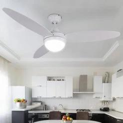 ETC-SHOP Ventilateur De Plafond LED Avec Télécommande à Tirette 3 Niveaux, Pales Réversibles 130 Cm