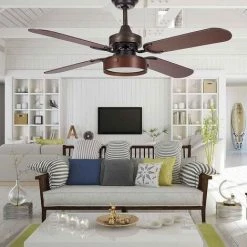 Ventilateur Rustique De Plafond Avec La Télécommande Brune De BIRUJI De FABRILAMP