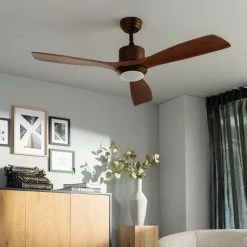 TECHBREY Ventilateur De Plafond LED Forest Marron 132cm Moteur DC Bois Foncé – Bois Foncé