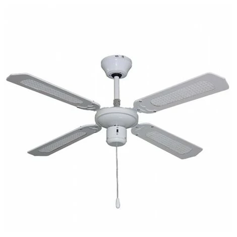 Ventilatore da soffitto 105 Calpe. -MARCA: BASTILIPO. -Modello: Calpe. -Ventilatore a soffitto. -4 lame reversibili. -Dimensioni: 135 x 40 cm. -Potenza motore: 60 W. -Colore bianco. -Molto tranquillo. -Ă a catena e ha 3 velocitĂ . -Ha una funzione inversa per l’estate e l’inverno. -Compatibile con il kit di controllo remoto per comoditĂ . -Peso: 5 Kg.