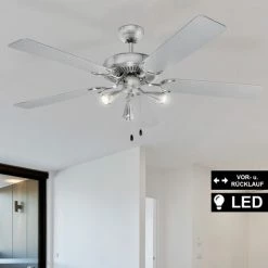 Trois lampes LED de haute qualité à économie d’énergie sont incluses. Détails • Ventilateur de plafond au design attrayant en acier inoxydable