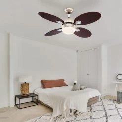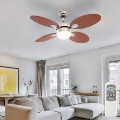 la description L’accroche-regard pour votre appartement ! Ce ventilateur de plafond moderne est un véritable accroche-regard. Les pales de ventilateur marron et l’élément d’éclairage intégré mettent des accents particuliers dans votre décoration d’intérieur. Un moteur silencieux et puissant assure une circulation d’air parfaite, idéale pour les pièces d’une taille de 15 m². Lorsqu’il fait à nouveau chaud, que ce soit au travail ou à la maison, ce ventilateur de plafond apporte le refroidissement tant attendu, car un flux d’air vers le bas crée un effet de refroidissement. Vous avez le choix de contrôler le ventilateur depuis le confort de votre canapé à l’aide de la télécommande ou si vous préférez le contrôler à l’aide de l’interrupteur à tirette classique. Le ventilateur peut être commuté à l’aide de l’interrupteur à tirette. Trois niveaux de vitesse peuvent être réglés, de 115 tours à 235 tours par minute. Comme l’air chaud monte toujours jusqu’au plafond du salon, vous pouvez même économiser jusqu’à 30 % sur les frais de chauffage avec ce ventilateur, car il a un retour réglable pour que l’air chaud soit repoussé vers le bas. Ce ventilateur a une particularité, car vous pouvez même le monter sur des plafonds avec un angle d’inclinaison allant jusqu’à 30°, de sorte que vous puissiez également obtenir une circulation d’air parfaite sous le toit. Les pales du ventilateur peuvent être montées en deux couleurs différentes. Les projecteurs LED ne consomment qu’une quantité minimale d’électricité et consomment même moins que les lampes à économie d’énergie. C’est bon pour l’environnement et votre porte-monnaie. Une ampoule LED de haute qualité et une télécommande sont incluses dans la livraison. des détails