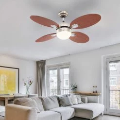 la description L’accroche-regard pour votre appartement ! Ce ventilateur de plafond moderne est un véritable accroche-regard. Les pales de ventilateur marron et l’élément d’éclairage intégré mettent des accents particuliers dans votre décoration d’intérieur. Un moteur silencieux et puissant assure une circulation d’air parfaite, idéale pour les pièces d’une taille de 15 m². Lorsqu’il fait à nouveau chaud, que ce soit au travail ou à la maison, ce ventilateur de plafond apporte le refroidissement tant attendu, car un flux d’air vers le bas crée un effet de refroidissement. Le ventilateur peut être commuté à l’aide de l’interrupteur à tirette. Trois niveaux de vitesse peuvent être réglés, de 115 tours à 235 tours par minute. Étant donné que l’air chaud monte toujours jusqu’au plafond du salon, vous pouvez même économiser jusqu’à 30 % sur les coûts de chauffage avec ce ventilateur, car il a un retour réglable afin que l’air chaud soit refoulé vers le bas. Ce ventilateur a une particularité, car vous pouvez même le monter sur des plafonds avec un angle d’inclinaison jusqu’à 30° maximum, de sorte que vous puissiez également obtenir une circulation d’air parfaite sous le toit. Les pales du ventilateur peuvent être montées en deux couleurs différentes. À l’aide de la télécommande fournie, l’illuminant LED RVB peut être réglé sur différentes couleurs et assure ainsi un éclairage d’ambiance.