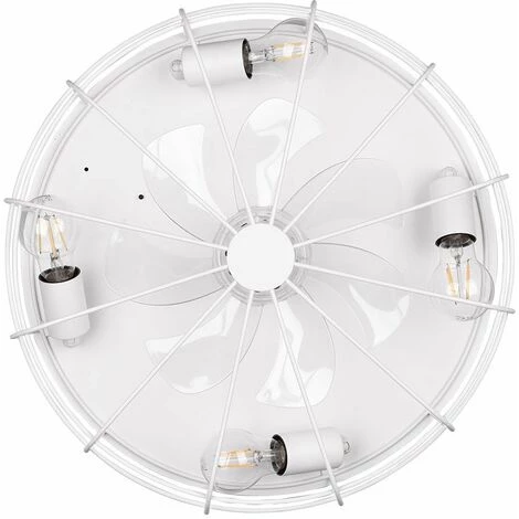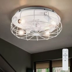 ETC-SHOP Ventilateur De Plafond Avec éclairage Et Télécommande Ventilateur Avec Plafonnier Lumineux Lampe De Ventilateur De Plafond Vintage, Minuterie 3 Niveaux, Grille En Métal Blanc, 4x E27, D 48 Cm