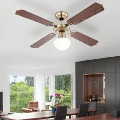 Ce ventilateur de plafond moderne est un véritable accroche-regard. Les pales de ventilateur marron et l’élément d’éclairage intégré mettent des accents particuliers dans votre décoration d’intérieur.