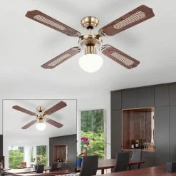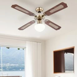 la description Ventilateur de plafond pratique avec ampoules LED. Ce ventilateur de plafond moderne est un véritable accroche-regard. Les pales de ventilateur marron et l’élément d’éclairage intégré mettent des accents particuliers dans votre décoration d’intérieur. Un moteur silencieux et puissant assure une circulation d’air parfaite, idéale pour les pièces d’une taille de 15 m².