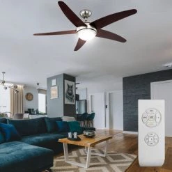 Ce ventilateur de plafond moderne est un vrai receveur. Les pales de ventilateur réversibles en wengé (marron foncé) et argent, ainsi que l’élément d’éclairage intégré, mettent des accents particuliers dans votre intérieur.