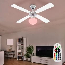 Un moteur silencieux et puissant assure une circulation d’air parfaite, idéal pour les pièces d’une taille de 15 m². est possible, que ce soit au travail ou à la maison, ce ventilateur de plafond apporte le refroidissement tant attendu, car un flux d’air descendant crée un effet de refroidissement. Le ventilateur peut être commuté à l’aide de l’interrupteur à tirette. Trois niveaux de vitesse peuvent être réglés, de 90 tours à 210 tours par minute. Étant donné que l’air chaud monte toujours jusqu’au plafond du salon, vous pouvez utilisez-le Le ventilateur peut même économiser jusqu’à 30% sur les coûts de chauffage, car il a un débit de retour réglable pour que l’air chaud soit à nouveau pressé. Cela a une particularité Ventilateur avec, car vous pouvez même le monter sur des plafonds avec un angle d’inclinaison jusqu’à un maximum de 35 °, de sorte que vous puissiez également obtenir une circulation d’air parfaite sous le toit. être monté en deux couleurs différentes. À l’aide de la télécommande fournie, l’illuminant LED RVB peut être réglé dans différentes couleurs et fournit ainsi un éclairage d’ambiance. Par rapport aux lumières normales, les spots LED consomment une quantité minimale d’électricité m et sont même en dessous des lampes à économie d’énergie en comparaison. Cela protège l’environnement et votre portefeuille. Une lampe LED RGB de haute qualité à économie d’énergie avec télécommande pour lumière blanche et RGB le contrôle est inclus inclus.