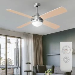 Puisque l’air chaud monte jusqu’au plafond du salon, vous pouvez Ă©conomiser sur les coĂ»ts de chauffage avec ce ventilateur, car il a un retour rĂ©glable pour que l’air chaud soit repoussĂ© vers le bas. Ce ventilateur est Ă©quipĂ© d’un puissant moteur de 50 watts et peut ĂȘtre utilisĂ© dans des espaces de vie jusqu’Ă 25 mÂČ. ĂquipĂ© de deux douilles E27, vous pouvez utiliser des ampoules d’une puissance maximale de 35 watts chacune et ainsi dĂ©cider vous-mĂȘme de l’intensitĂ© lumineuse et de la couleur.  Les ampoules ne sont pas comprises dans la livraison.  Ventilateur de dĂ©tails  ⹠Ventilateur de plafond