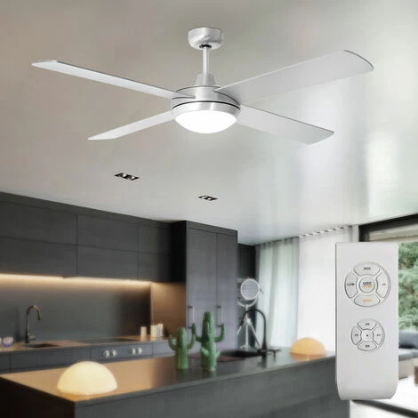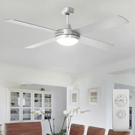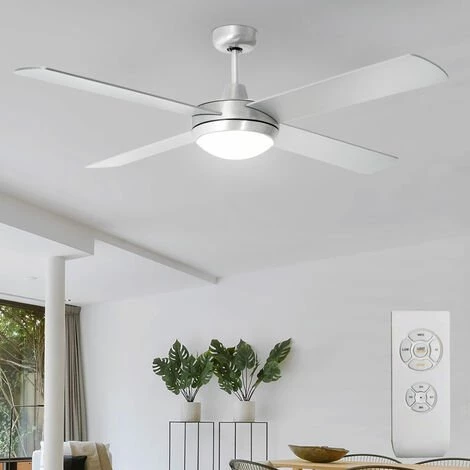 Lorsqu’il fait Ă nouveau chaud, que ce soit au travail ou Ă la maison, ce ventilateur de plafond apporte le refroidissement tant attendu, car un flux d’air vers le bas crĂ©e un effet de refroidissement. Trois niveaux de vitesse peuvent ĂȘtre rĂ©glĂ©s Ă l’aide de la tĂ©lĂ©commande fournie (faible, moyen, Ă©levĂ©).  Puisque l’air chaud monte toujours jusqu’au plafond du salon, vous pouvez mĂȘme Ă©conomiser sur les frais de chauffage avec ce ventilateur, car il a un retour rĂ©glable pour que l’air chaud soit repoussĂ© vers le bas.  La vitesse du ventilateur peut ĂȘtre rĂ©glĂ©e et la lumiĂšre allumĂ©e et Ă©teinte avec la tĂ©lĂ©commande incluse.  Les ampoules ne sont pas comprises dans la livraison.   Ventilateur de dĂ©tails  ⹠Ventilateur de plafond