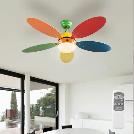 Ce ventilateur de plafond coloré est un vrai accroche-regard. Les pales de ventilateur de différentes couleurs et l’élément d’éclairage intégré mettent des accents particuliers dans votre intérieur.