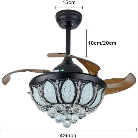 Description du produit :TempĂ©rature de couleur : CCT Ă intensitĂ© variable (3 cycles de lumiĂšre).Type de source de lumiĂšre : LED (ensemble d’Ă©clairage inclus).Commande : tĂ©lĂ©commande incluse.Dimensions : 36 pouces, 4 lames rĂ©tractables.Puissance lĂ©gĂšre : 36 W.Puissance du moteur : 56 W.Vitesse : 3.Tension : 220-240 V CA.Contenu :1 ventilateur de plafond rĂ©tractable.1 jeu de vis.2 tiges en duvet (10 cm et 20 cm).1 tĂ©lĂ©commande.1 manuel d’utilisation (français non garanti).Guide d’installation :Plafonnier adaptĂ© pour les maisons de plafond en bĂ©ton, les plaques de plĂątre et les plafonds en bois, vous devez acheter un support de transformation.Identifiez et branchez les cĂąbles Ă©lectriques.La hauteur du plafond est supĂ©rieure Ă 110 pouces, levage de 110 livres.Nous recommandons l’installation par un Ă©lectricien agréé.ăSuggestionă1. Pour une installation sĂ©curisĂ©e, assurez-vous que le boĂźtier de commutation sur lequel ce dispositif est montĂ© est correctement fixĂ© Ă un composant du bĂątiment.2. Tous les fils sont connectĂ©s. Lors du dĂ©ballage, veillez Ă ne pas tirer sur les cĂąbles, car cela peut entraĂźner une mauvaise connexion.3. Ne branchez pas l’alimentation lorsque votre appareil est complĂštement montĂ©.4. Pour rĂ©duire le risque d’incendie, de choc Ă©lectrique ou de blessure corporelle, Ă©teignez toujours l’appareil et dĂ©branchez la prise de courant. Laissez refroidir avant de remplacer l’ampoule.5. Ne touchez pas l’ampoule lorsque l’appareil est allumĂ©, et ne regardez pas directement l’ampoule.