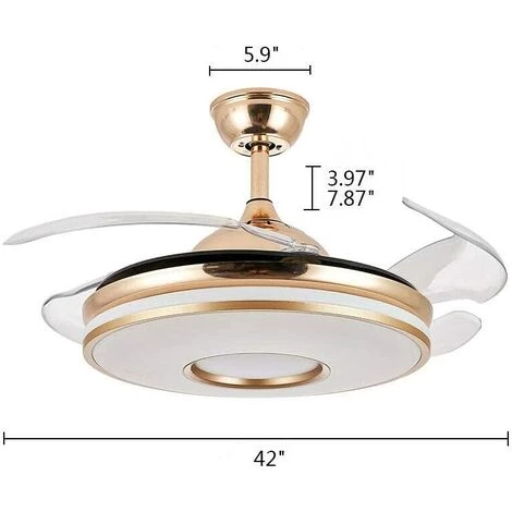 TempĂ©rature de couleur : CCT Ă intensitĂ© variable (3 cycles de lumiĂšre).Type de source lumineuse : LED (kit d’Ă©clairage inclus).Commande : tĂ©lĂ©commande incluse.Dimensions : 100 cm, 4 lames rĂ©tractables.Puissance lumineuse : 36 W.Puissance du moteur : 56 W.Vitesse : 3.Tension : 220-240 V CA.DurĂ©e de vie moyenne : 5 Ă 10 ans.Instructions d’installation :Plafonnier adaptĂ© aux maisons de plafond en bĂ©ton plat, aux plafonds en plĂątre et en bois, vous devez acheter un support de transformation.Identifiez et connectez les fils Ă©lectriques.La hauteur du plafond est supĂ©rieure Ă 110″, soulevez 110 kg.Contenu de la livraison :1 ventilateur de plafond escamotable.1 jeu de vis.2 tiges en duvet (10 cm et 20 cm).1 tĂ©lĂ©commande.1 manuel d’utilisation (français non garanti).