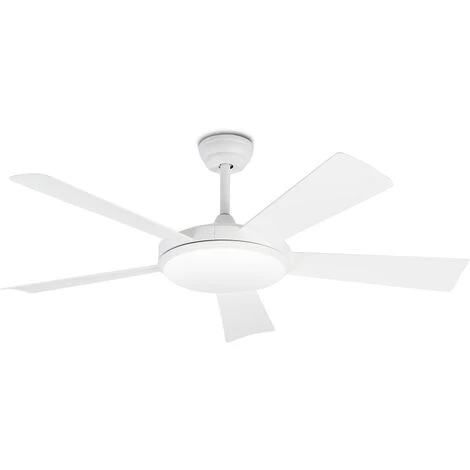 Ventilateur de plafond modĂšle SAONA de la marque FARO avec lumiĂšre. Dispose d’un moteur DC avec une puissance maximale de 24W et 5 vitesses: 5-8-14-21-38 W / 85-105-126-155-180RPM. ActionnĂ© Ă l’aide d’une tĂ©lĂ©commande. Le corps est en acier couleur blanc mat, dispose de 5 lames de ABS de couleur blanc mat et a un diamĂštre de 1320 mm. Le diffuseur est PC (polycarbonate). Ce ventilateur comprend une source lumineuse SMD LED 2475 Lm. Non compatible avec les tiges d’extension. Il convient Ă une installation sur un plafond en pente jusqu’Ă 30Âș. Ce ventilateur de plafond e adaptĂ© pas pour l’extĂ©rieur. Ce ventilateur dispos de la fonction inverse, vous pourrez donc lutiliser en hiver pour amĂ©liorer lefficacitĂ© de votre setstĂšme de chauffage.