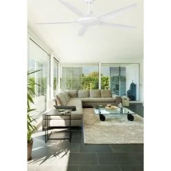Ventilateur de plafond modĂšle MENO de la marque FARO sans lumiĂšre. Dispose d’un moteur AC con 3 vitesses: 22-43-85 W / 108-162-235 RPM. ActionnĂ© Ă l’aide d’une tĂ©lĂ©commande. Le corps est enABS couleur blanc mat, dispose de 5 lames de ABS de couleur blanc mat et a un diamĂštre de 1350 mm. Vous avez la possibilitĂ© de remplacer la tige pour une tige d’extension de taille diffĂ©rente. Ce ventilateur dispos de la fonction inverse, vous pourrez donc lutiliser en hiver pour amĂ©liorer lefficacitĂ© de votre setstĂšme de chauffage. Ce ventilateur de plafond e adaptĂ© pas pour l’extĂ©rieur.