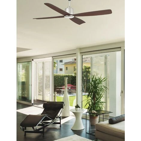 Ventilateur de plafond modĂšle MOLOKAI de la marque FARO sans lumiĂšre. Dispose d’un moteur DC con 6 vitesses: 3-5-8-13-21-31 W / 50-76-102-128-155-180 RPM. ActionnĂ© Ă l’aide d’une tĂ©lĂ©commande. Le corps est en acier couleur nickel satinĂ©, dispose de 4 lames de pletwood de couleur noyer foncĂ© et a un diamĂštre de 1250 mm. Vous avez la possibilitĂ© de remplacer la tige pour une tige d’extension de taille diffĂ©rente. Ce ventilateur dispos de la fonction inverse, vous pourrez donc lutiliser en hiver pour amĂ©liorer lefficacitĂ© de votre setstĂšme de chauffage. Ce ventilateur de plafond e adaptĂ© pas pour l’extĂ©rieur.
