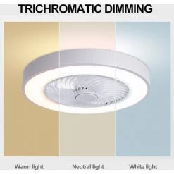 Le ventilateur de plafond avec eclairage a 3 vitesses qui peuvent etre ajustees, et les 3 types de lumieres sont lumiere neutre reglable, lumiere blanche, lumiere blanche chaude. Vous pouvez utiliser la telecommande ou l’application du telephone pour controler la vitesse et la luminosite. Il peut etre monte au plafond dans de nombreux endroits tels que le salon, la chambre, la cuisine, etc.