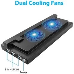 2.ă2 ventilateursă – DĂ©veloppĂ© avec 2 ventilateurs. Peut garder votre Xbox One S au frais et au calme avec le support de refroidissement vertical. Vous n’avez pas Ă vous soucier de la surchauffe de votre console et de la combustion de votre table aprĂšs des heures de jeu