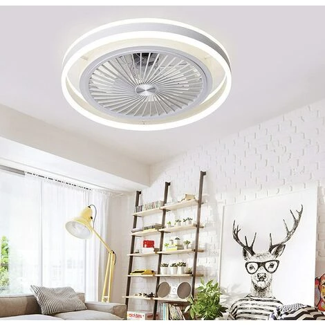 Ventilateur de plafond avec éclairage Ventilateur LumiÚre LED Dimmable Chambre Cuisine Blanc