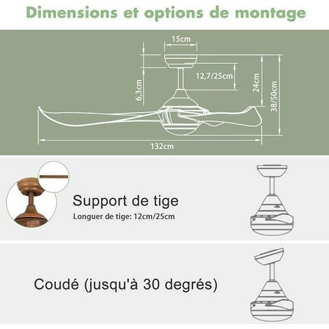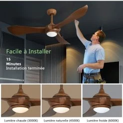 - Installation simple & Entretien facile : Nous vous fournissons un manuel des instructions bien illustrĂ©es pour faciliter lâassemblage de ce ventilateur de plafond. Il ne nĂ©cessite que 15 minutes, et lâappareil est prĂȘt Ă utiliser. Dâailleurs, la surface impermĂ©able peut ĂȘtre nettoyĂ©e avec un chiffon humide, ce qui Ă©conomise de lâĂ©nergie.