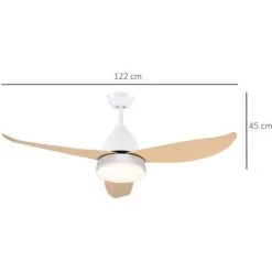 Ce joli ventilateur de plafond 3 pales aspect bois avec plafonnier intĂ©grĂ© vous procurera une brise rafraĂźchissante ou fera circuler l’air chaud suivant les saisons. GrĂące Ă son diamĂštre de 122 cm, ses 6 vitesses, son mode timer, sa tĂ©lĂ©commande et kit complet d’installation inclus, son usage vous permettra de vivre plus confortablement et de mieux supporter les chaleurs de l’Ă©tĂ©.