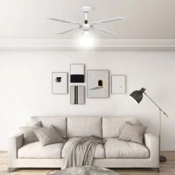Que vous cherchiez un moyen de vous rafraĂźchir par temps chaud ou que vous vouliez illuminer votre intĂ©rieur, ce ventilateur de plafond rĂ©pond Ă vos besoins. FabriquĂ© en mĂ©tal et en MDF, ce ventilateur de plafond est robuste et durable. Ce ventilateur dispose de 3 niveaux de vitesse diffĂ©rents et de 2 directions pour le flux d’air. En tirant sur la chaĂźne, vous pouvez rĂ©gler le niveau et la direction dĂ©sirĂ©s facilement. Avec la lampe intĂ©grĂ©e, le ventilateur de plafond illumine la piĂšce et crĂ©e une ambiance agrĂ©able dans votre espace de vie. Veuillez noter que l’ampoule n’est pas incluse dans la livraison.