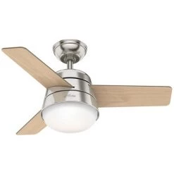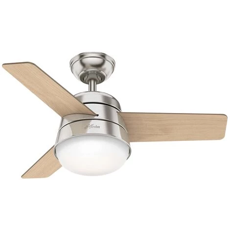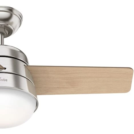 - Couleur des pales : noyer américain / bois clair (MDF, réversibles)