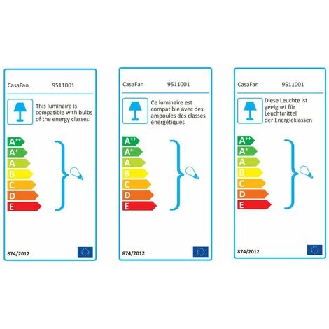 - Ce luminaire est compatible avec des ampoules des classes Ă©nergĂ©tiques: A++ – E!