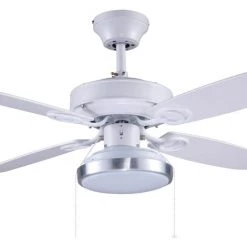 Le ventilateur de plafond Langford est fabriquĂ© en aluminium blanc et comporte quatre pales en bois blanc. Il n’a pas d’Ă©clairage mais peut ĂȘtre Ă©quipĂ© de plafonniers LED 7W. IdĂ©al pour les piĂšces froides telles que le salon, la cuisine et la chambre Ă coucher pendant les mois d’Ă©tĂ©. Position Ă©tĂ©-hiver. Le diffuseur n’est pas inclus mais est disponible sur notre site internet et en bleu, rose et argent.