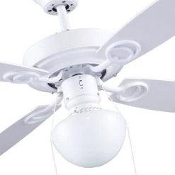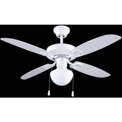 La structure du ventilateur de plafond Itzel est en aluminium avec une finition blanche, ses pales sont en bois blanc et son abat-jour est en verre. Douille de lampe E27 (ampoule non incluse). N’ayez pas chaud cet Ă©tĂ© et rafraĂźchissez vos piĂšces, salons, cuisines et chambres avec le ventilateur de plafond Itzel. Position hiver-Ă©tĂ©.