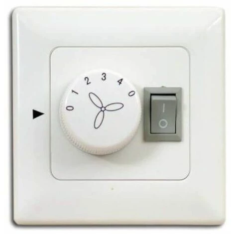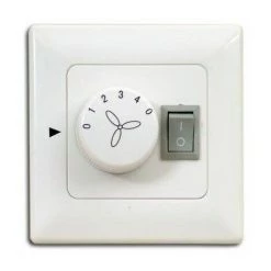 - FonctionnalitĂ© – 4 vitesses de ventilateur et off. Interrupteur on/off pour l’Ă©clairage du ventilateur. La livraison comprend un boĂźtier montĂ© en surface qui est installĂ© sur le mur (visserie non incluse). Il est Ă©galement possible d’installer cette commande dans des prises standards Ă encastrer (simple).