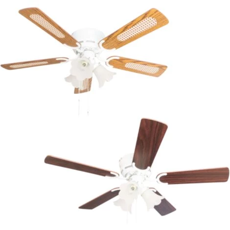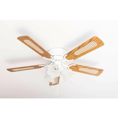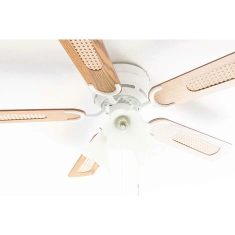 - Couleur des pales : chĂȘne avec rotin / noyer (rĂ©versibles)