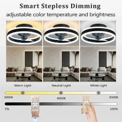 Dimmable: Le plafond du ventilateur peut ĂȘtre commutĂ© de loin entre la lumiĂšre blanche, la lumiĂšre neutre et la lumiĂšre chaude pour rĂ©pondre Ă tous vos besoins de la vie. Peut ĂȘtre dĂ©fini avec la tĂ©lĂ©commande 2.4G
