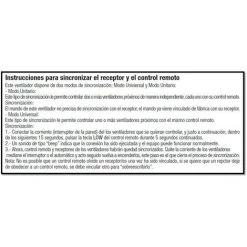 TĂ©lĂ©commande universelle, par radiofrĂ©quence, pour ventilateurs de plafond Ă moteur AC; synchronisĂ© en standard avec le rĂ©cepteur (qui est inclus); Il permet de rĂ©gler jusqu’Ă 3 vitesses, avec minuterie d’arrĂȘt 1/2h, 1h, 3h. IdĂ©al Ă utiliser dans votre ventilateur AC qui n’est pas livrĂ© avec la tĂ©lĂ©commande en standard ou pour remplacer un dĂ©fectueux. Il fonctionne avec la plupart des ventilateurs AC europĂ©ens mais il y a toujours des exceptions (cela dĂ©pend de la taille du moteur). Piles/piles non incluses.