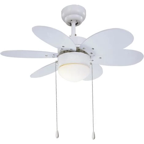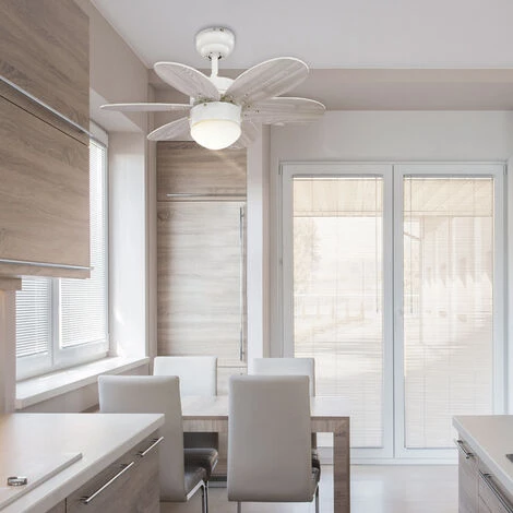 Ventilateur de plafond avec moteur AC, diamĂštre 76cm, idĂ©al pour les piĂšces de moins de 12M2. Avec un corps fini blanc et six lames rĂ©versibles incluses : blanc / bois pine. Avec verre opale. Il s’active au moyen de deux chaĂźnes avec poignĂ©e dĂ©corative (tĂ©lĂ©commande compatible vendue sĂ©parĂ©ment). Avec douille E27, maximum 60W, (ampoule non incluse) et a la possibilitĂ© de monter Ă deux hauteurs, l’une avec une tige de selle et l’autre directement sur le moteur. Fonction Ă©tĂ©/hiver. RPM : 131/187/237 ; Consommation : 16/27/53 W/h ; DĂ©bit d’air : 48/67/96 m3/min ; Niveau sonore : 39/42/46 dB. Dimensions : 76×28-38cm.