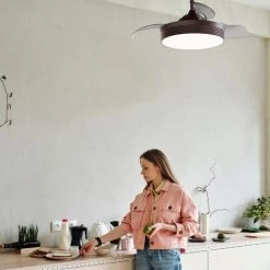 Ventilateur de plafond DC de 107cm de diamĂštre, idĂ©al pour les piĂšces de 14 Ă 20M2. Avec corps en mĂ©tal en marron et trois lames rĂ©tractables en ABS transparent. Moteur Ă courant continu de haute qualitĂ© qui permet des performances Ă©levĂ©es avec une consommation et un son minimaux. Fonction Ă©tĂ© / hiver incluse. Il est livrĂ© avec une source de lumiĂšre LED 36W et 3300 lumens qui est contrĂŽlĂ©e par la tĂ©lĂ©commande avec une minuterie, pouvant changer la tempĂ©rature de couleur (chaude, neutre, froide). Dimensions (cm): 107×39,3-52cm; RPM: 140-160-180-200-210-220; Consommation (W): 5-7-12-15-19-22; DĂ©bit d’air (m3 / min): 78-105-132-138-158-172 et Niveau sonore (dB): 20-23-27-32-34-38.
