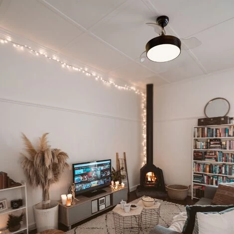 Ventilateur de plafond DC de 107cm de diamĂštre, idĂ©al pour les piĂšces de 14 Ă 20M2. Avec corps en mĂ©tal en noir et trois lames rĂ©tractables en ABS transparent. Moteur Ă courant continu de haute qualitĂ© qui permet des performances Ă©levĂ©es avec une consommation et un son minimaux. Fonction Ă©tĂ© / hiver incluse. Il est livrĂ© avec une source de lumiĂšre LED 36W et 3300 lumens qui est contrĂŽlĂ©e par la tĂ©lĂ©commande avec une minuterie, pouvant changer la tempĂ©rature de couleur (chaude, neutre, froide). Dimensions (cm): 107×39,3-52cm; RPM: 140-160-180-200-210-220; Consommation (W): 5-7-12-15-19-22; DĂ©bit d’air (m3 / min): 78-105-132-138-158-172 et Niveau sonore (dB): 20-23-27-32-34-38.