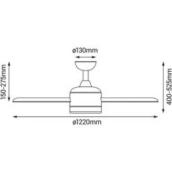 Ventilateur de plafond DC de 122cm de diamĂštre, idĂ©al pour les piĂšces de 14 Ă 20M2. Avec corps en mĂ©tal au blanc et quatres lames en plywood du mĂȘme couleur. Moteur Ă courant continu de haute qualitĂ© qui permet des performances Ă©levĂ©es avec une consommation et un son minimaux. Fonction Ă©tĂ© / hiver incluse. Pour deux ampoules E27, non incluses, qui est contrĂŽlĂ©e par la tĂ©lĂ©commande avec une minuterie.Dimensions (cm): 122×40-52,5cm; RPM: 95-120-140-174-208-230; Consommation (W): 3-5-7-12-20-28; DĂ©bit d’air (m3 /min): 50-85-95-130-140-155 et Niveau sonore (dB): 30-37-40-45-50-55.