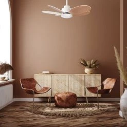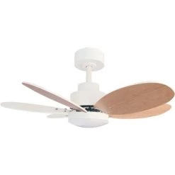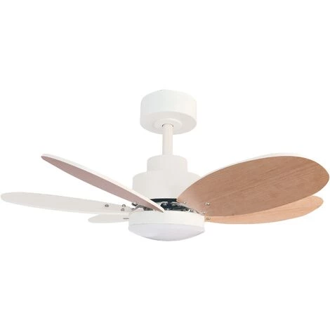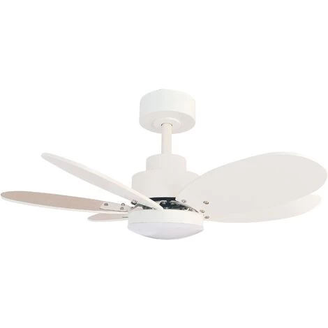Ventilateur de plafond DC de 75cm de diamĂštre, idĂ©al pour les piĂšces de mois de 14M2. Avec corps en mĂ©tal blanc et six lames en plywood reversibles couleur blanc/marron. Moteur Ă courant continu de haute qualitĂ© qui permet des performances Ă©levĂ©es avec une consommation et un son minimaux. Fonction Ă©tĂ© / hiver incluse. Il est livrĂ© avec une source de lumiĂšre LED 18W et 1800 lumens qui est contrĂŽlĂ©e par la tĂ©lĂ©commande avec une minuterie, pouvant changer la tempĂ©rature de couleur (chaude, neutre, froide). Dimensions (cm): 75x34cm; RPM: 80/110/140/160/180/200; Consommation (W): 2/3/4/5.7/7/8.5; DĂ©bit d’air (m3 / h): 1700/2800/3400/4300/4600/5400 et Niveau sonore (dB): 20/25/28/30/35/38.