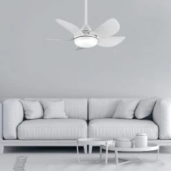 Ventilateur de plafond DC de 76cm de diamĂštre, idĂ©al pour les piĂšces de moins 14M2. Avec corps en mĂ©tal au blanc et cinq lames en ABS du mĂȘme couleur. Moteur Ă courant continu de haute qualitĂ© qui permet des performances Ă©levĂ©es avec une consommation et un son minimaux. Fonction Ă©tĂ© / hiver incluse. Il est livrĂ© avec une source de lumiĂšre LED 24W 2000 lumens qui est contrĂŽlĂ©e par la tĂ©lĂ©commande avec une minuterie, pouvant changer la tempĂ©rature de couleur (chaude, neutre, froide). Dimensions (cm): 76×35,5cm; RPM: 182/220/241/273/300; Consommation (W): 5/8/12/17/23; DĂ©bit d’air (m3 / h): 3200/5300/6200/7350/8220 et Niveau sonore (dB): 20/25/30/38/42.