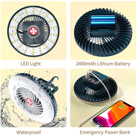[Utile] Vous pouvez utiliser les lumiĂšres tout en utilisant le ventilateur pour Ă©clairer les environs de votre tente ou camping pour de meilleures activitĂ©s dans l’obscuritĂ©