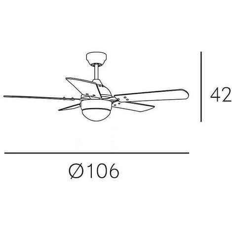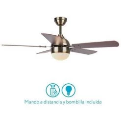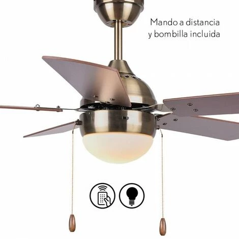 Il a 5 lames rĂ©versibles en finition noyer-cerise. Avec des dimensions 107×40 cm., et 230 V. Il a trois vitesses rĂ©glables par tĂ©lĂ©commande qui comprend cette offre, avec lâĂ©clairage pour 1 ampoule LED E27 Ă©galement inclus.