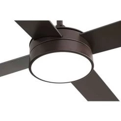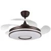 Ventilateur de plafond Ă quatre pales avec modĂšle de plafond LED NEVERY, en mĂ©tal, bois et verre, en marron avec QUATRE lames RĂVERSIBLES de couleur brun-hĂȘtre. Mesurant 36 cm de hauteur et 132 cm de diamĂštre.