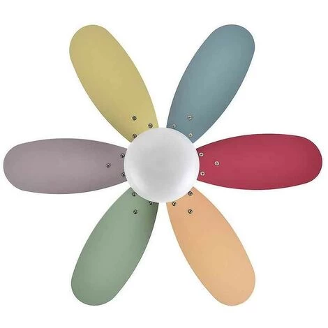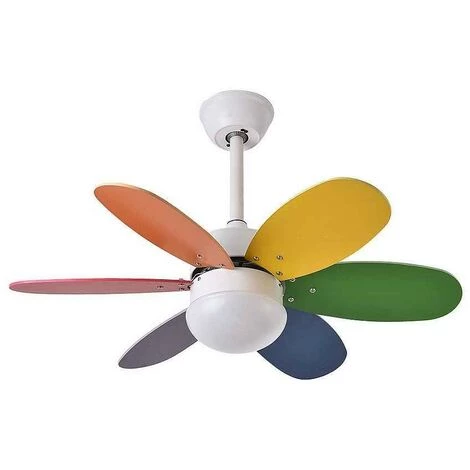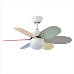 Ventilateur DC sĂ©rie ALVES BLANC avec six pales RĂVERSIBLES dans des couleurs vives et des couleurs pastel; et six vitesses. Ses dimensions sont de 41x85x85 centimĂštres. Il dispose de 2 supports de lampe E27. Ampoules non incluses.