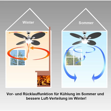 Description : Ventilateur de plafond moderne avec éclairage et pales à couleurs changeantes en graphite ou en hêtre. Ce ventilateur de plafond moderne est un véritable accroche-regard. Les pales de ventilateur à couleur variable et l’élément d’éclairage intégré mettent des accents particuliers dans votre mobilier intérieur. Un moteur silencieux et puissant assure une circulation d’air parfaite, ce qui est idéal pour les pièces de 12 m². Quand il fait à nouveau chaud, que ce soit au travail ou à la maison, ce ventilateur de plafond apporte le refroidissement tant attendu, car un flux d’air descendant crée un effet de refroidissement. Le ventilateur peut être commuté à l’aide de l’interrupteur à tirette. Trois niveaux de vitesse peuvent être réglés, de 130 tours à 240 tours par minute. Puisque l’air chaud monte jusqu’au plafond du salon, vous pouvez même utiliser ce ventilateur Économisez jusqu’à 30% sur les coûts de chauffage car il a un retour réglable pour que l’air chaud soit à nouveau pressé. La lampe n’est pas inclus dans le volume de livraison inclus. Détails : • Matériau : nickel mat, verre