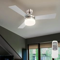 Lorsqu’il fait Ă nouveau chaud, que ce soit au travail ou Ă la maison, ce ventilateur de plafond apporte le refroidissement tant attendu, car un flux d’air vers le bas crĂ©e un effet de refroidissement. Le ventilateur peut ĂȘtre activĂ© Ă l’aide de la tĂ©lĂ©commande (allumage/extinction de la lumiĂšre et niveaux de vitesse). Trois niveaux de vitesse peuvent ĂȘtre rĂ©glĂ©s, de 85 tours Ă 145 Ă 200 tours par minute.