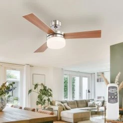 Ce ventilateur de plafond moderne est un vĂ©ritable accroche-regard. Les pales du ventilateur, disponibles en argent ou avec un motif en hĂȘtre, et l’Ă©lĂ©ment d’Ă©clairage intĂ©grĂ© mettent des accents particuliers dans votre dĂ©coration intĂ©rieure.