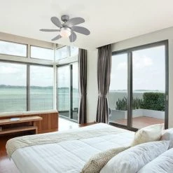 Lorsqu’il fait Ă nouveau chaud, que ce soit au travail ou Ă la maison, ce ventilateur de plafond apporte le refroidissement tant attendu, car un flux d’air vers le bas crĂ©e un effet de refroidissement. Le ventilateur peut ĂȘtre activĂ© Ă l’aide de la tĂ©lĂ©commande (allumage/extinction de la lumiĂšre et niveaux de vitesse). Trois niveaux de vitesse peuvent ĂȘtre rĂ©glĂ©s, de 85 tours Ă 145 Ă 200 tours par minute.