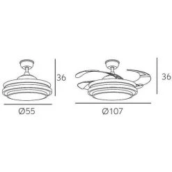 Ventilateur de plafond avec modĂšle LED intĂ©grĂ© SELENE en couleur NICKEL avec quatre pales FOLDING en mĂ©thacrylate trĂšs rĂ©sistant de couleur transparente. Il est Ă©quipĂ© dâun moteur Ă courant continu et de six vitesses. Des mesures 32×55 centimĂštres avec les lames pliĂ©es et de 32×108 centimĂštres avec les lames dĂ©pliĂ©es.