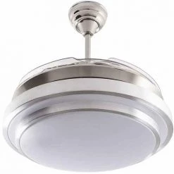 Ventilateur de plafond avec modĂšle LED intĂ©grĂ© SELENE en couleur NICKEL avec quatre pales FOLDING en mĂ©thacrylate trĂšs rĂ©sistant de couleur transparente. Il est Ă©quipĂ© dâun moteur Ă courant continu et de six vitesses. Des mesures 32×55 centimĂštres avec les lames pliĂ©es et de 32×108 centimĂštres avec les lames dĂ©pliĂ©es.